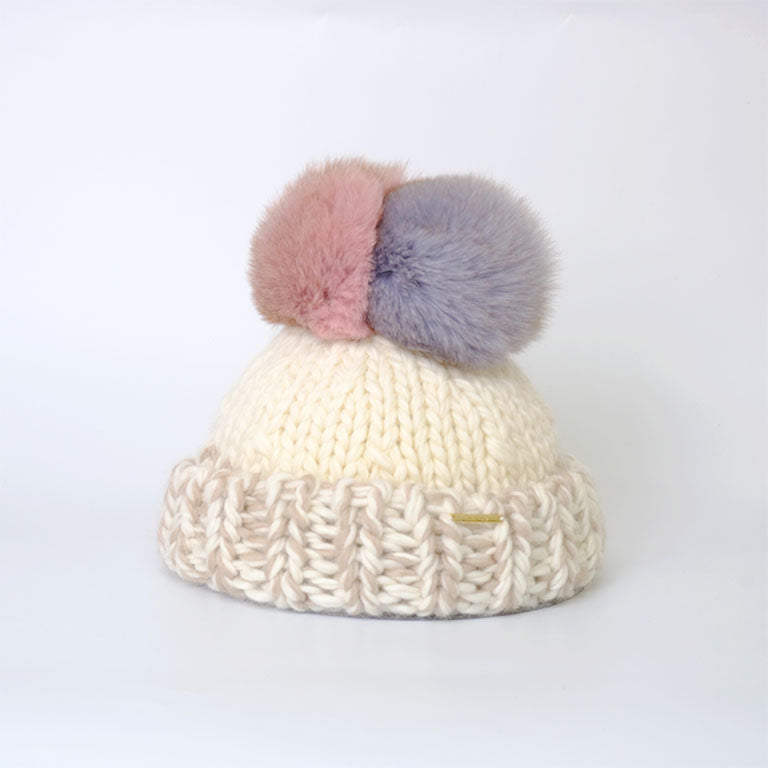 提供米色和灰色两种选择。设计具有温暖及时尚感,给人可爱的印象。非常适合寒冷的季节,毛球的细节是独特且时尚的装饰。推荐给那些想为日常造型增添趣味的人。