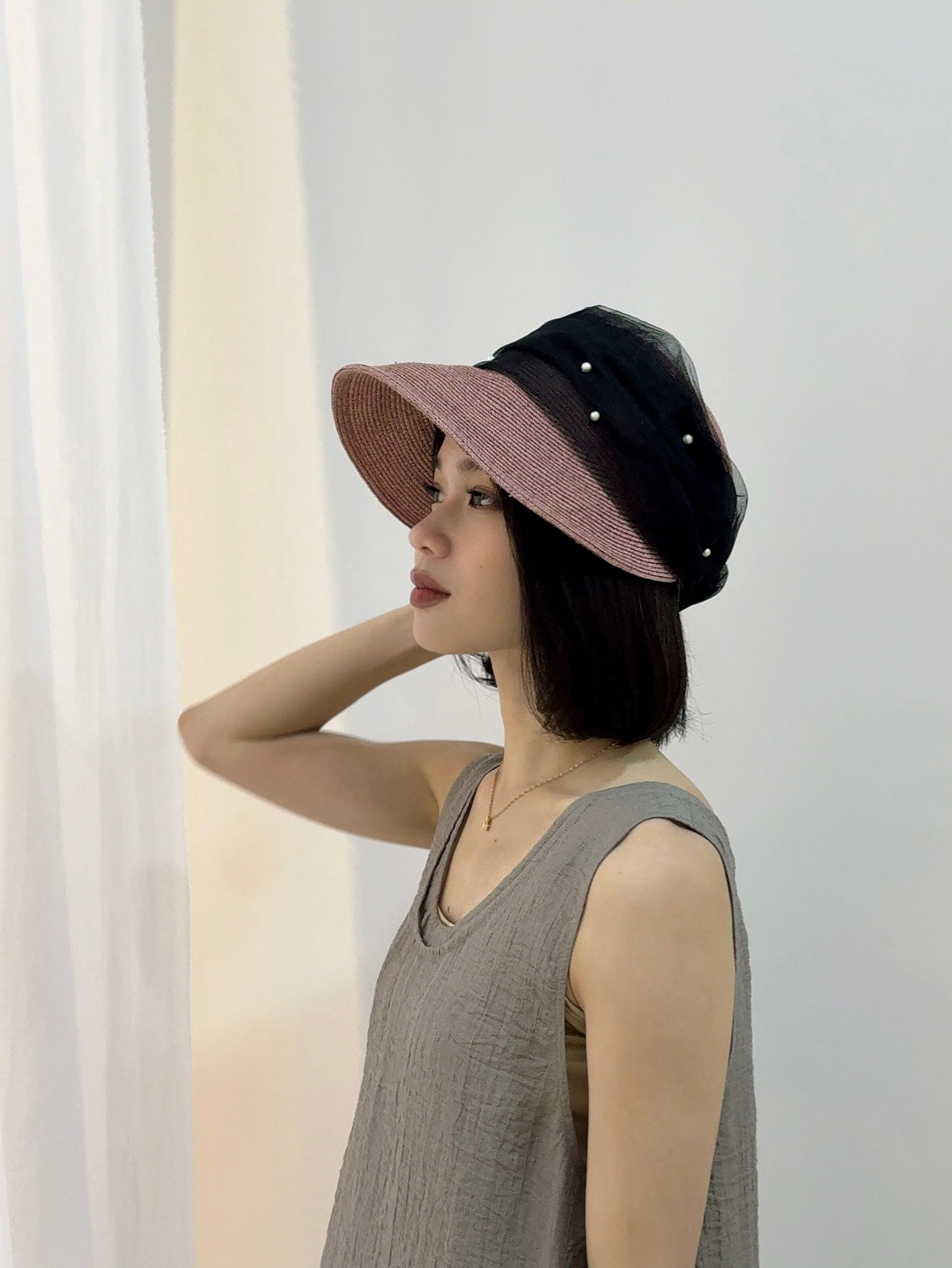 上品なデザインと機能性を兼ね備えた新作キャスケットです。カラー展開はベージュ、ナチュラル、ピンクの3色で、どれも女性らしい優雅な印象を与えます。